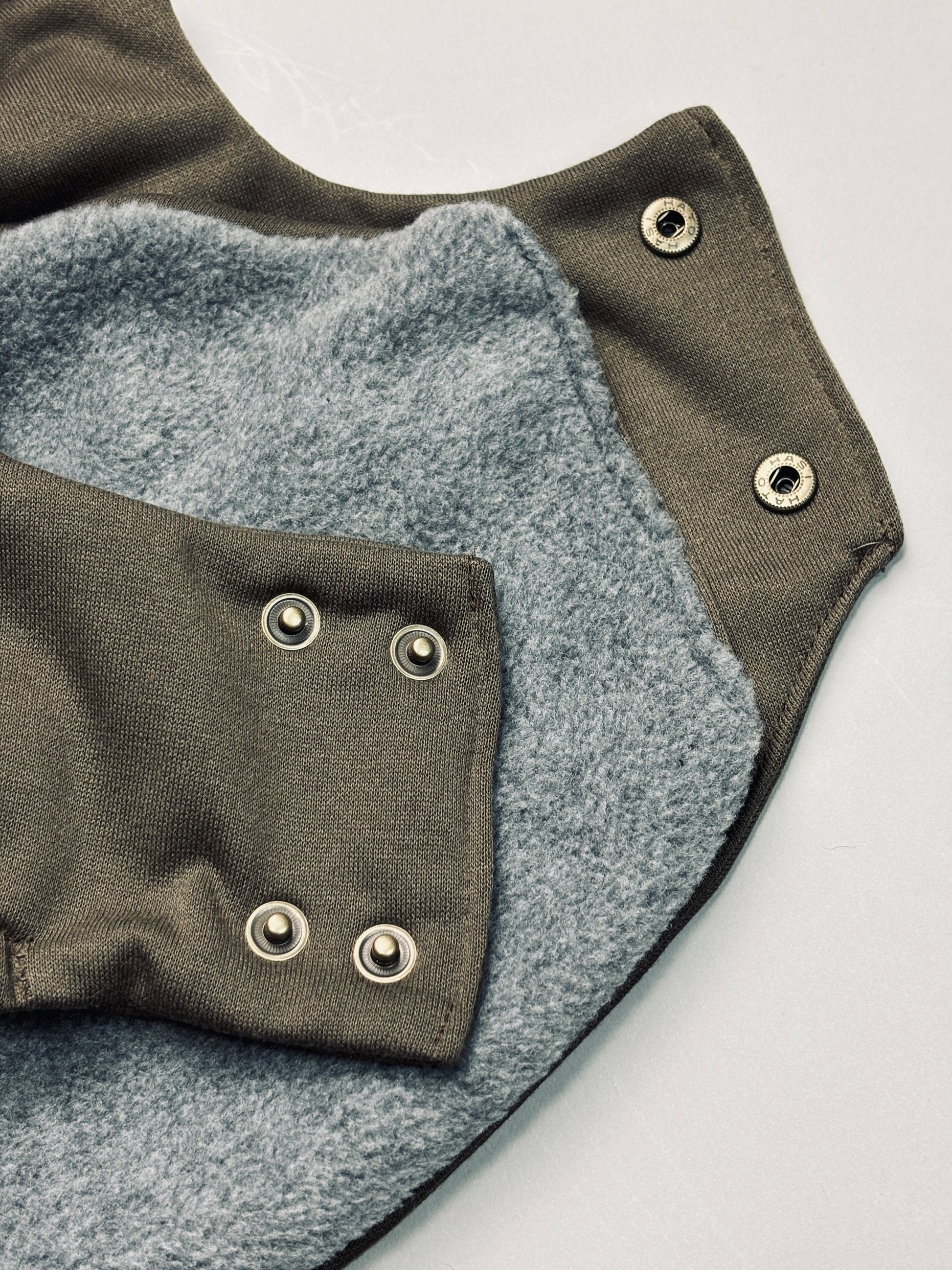 •福(ブリンドル)カーキのサイズ1+インナーフリースを着用